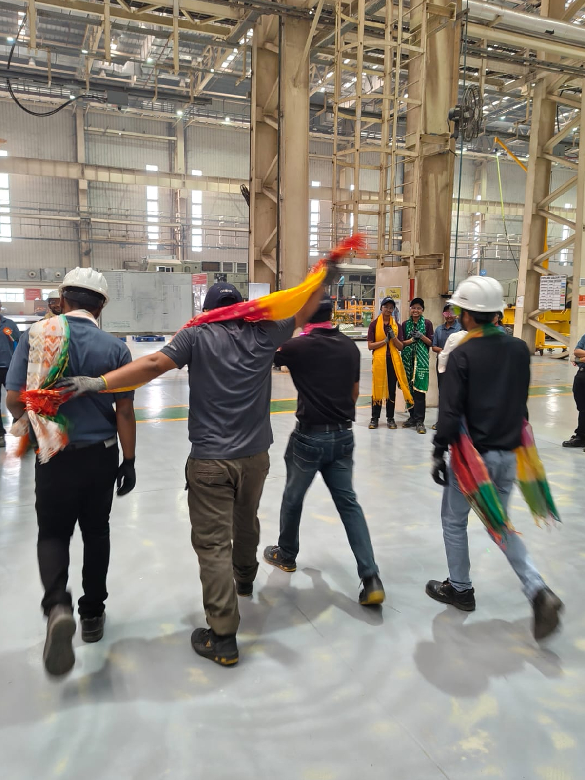 The engagement stations were crafted as short, high-impact experiential modules lasting 25–30 minutes, combining movement, music, storytelling, and team participation. Every activity had a vibrant dance element woven into it—from fashion show performances with playful props to Bollywood dialogue enactments, street-style performances, and music-based games that encouraged participants to let go of routine pressures and fully immerse themselves in the moment. Engineers who spend their days building the mechanical backbone of the nation’s railways found themselves grooving enthusiastically to Punjabi and Haryanvi beats, including crowd favourites like “Lagawelu Lipstick,” while laughter, applause, and spontaneous cheering echoed across the shop floor. Small tokens of appreciation, such as chocolates awarded for participation and creativity, became surprisingly powerful symbols of recognition—eliciting genuine excitement and reinforcing the spirit of achievement and camaraderie.